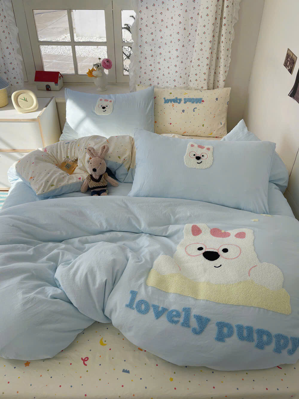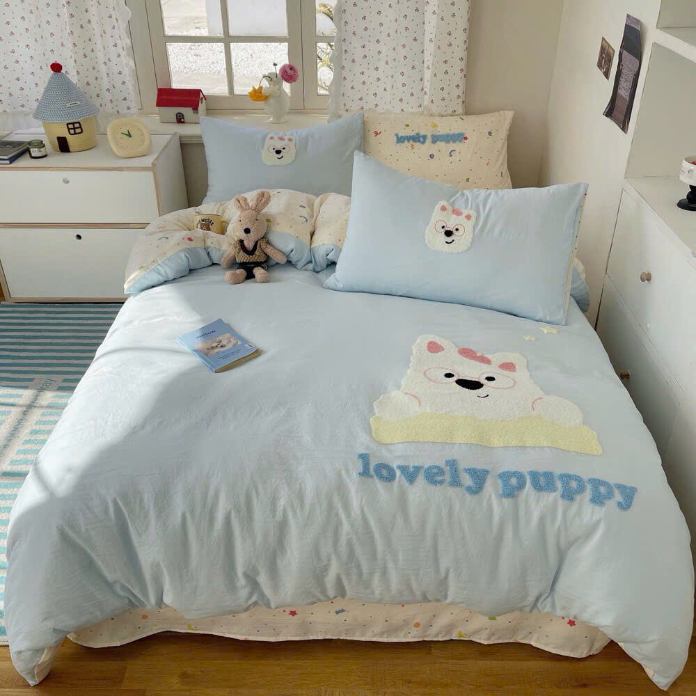 Với thiết kế họa tiết đáng yêu, bộ chăn ga gối này sẽ khiến căn phòng của bạn trở nên sinh động hơn. Điểm nhấn với đường thêu tinh tế tạo nên sự hài hòa, vừa ngọt ngào vừa hiện đại.