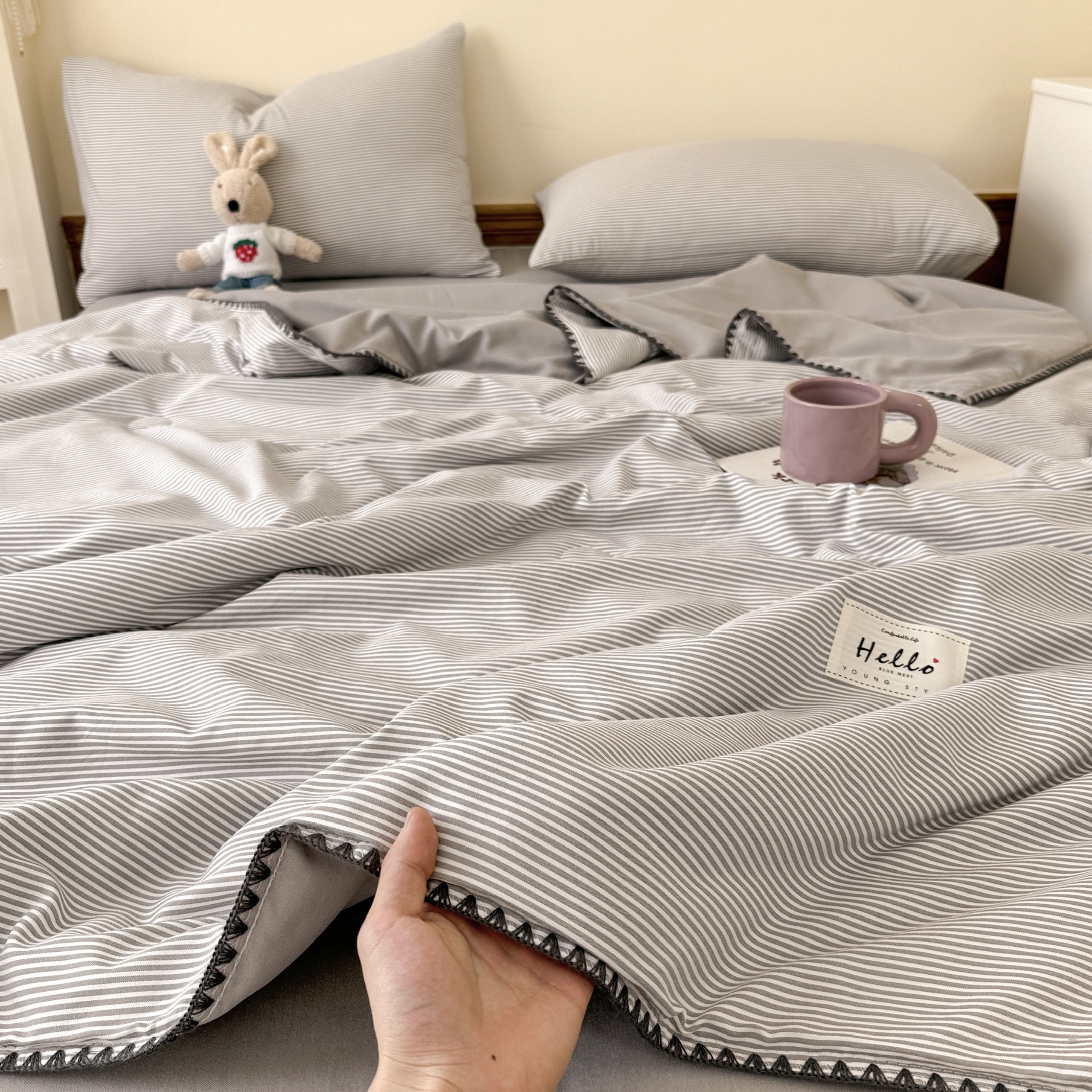 Thiết kế chăn trần tiện lợi: Lớp chăn được may trần nhẹ nhàng, dùng trực tiếp mà không cần ruột chăn – vừa tiện lợi, vừa gọn nhẹ.