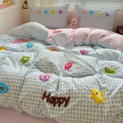 Với thiết kế họa tiết đáng yêu, bộ chăn ga gối này sẽ khiến căn phòng của bạn trở nên sinh động hơn. Điểm nhấn với đường thêu tinh tế tạo nên sự hài hòa, vừa ngọt ngào vừa hiện đại.