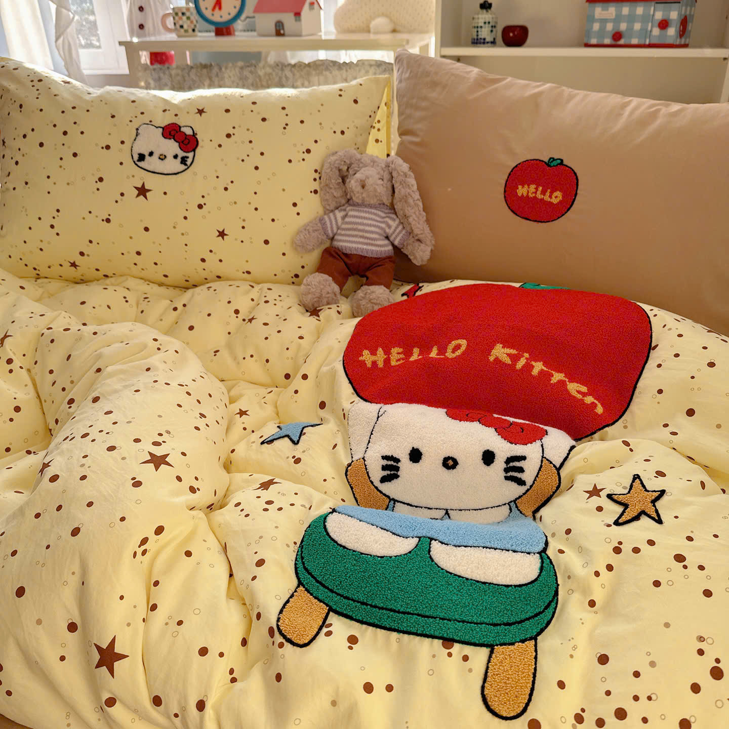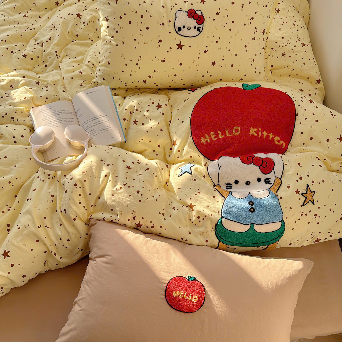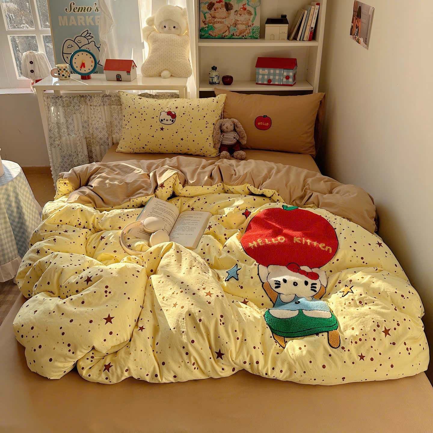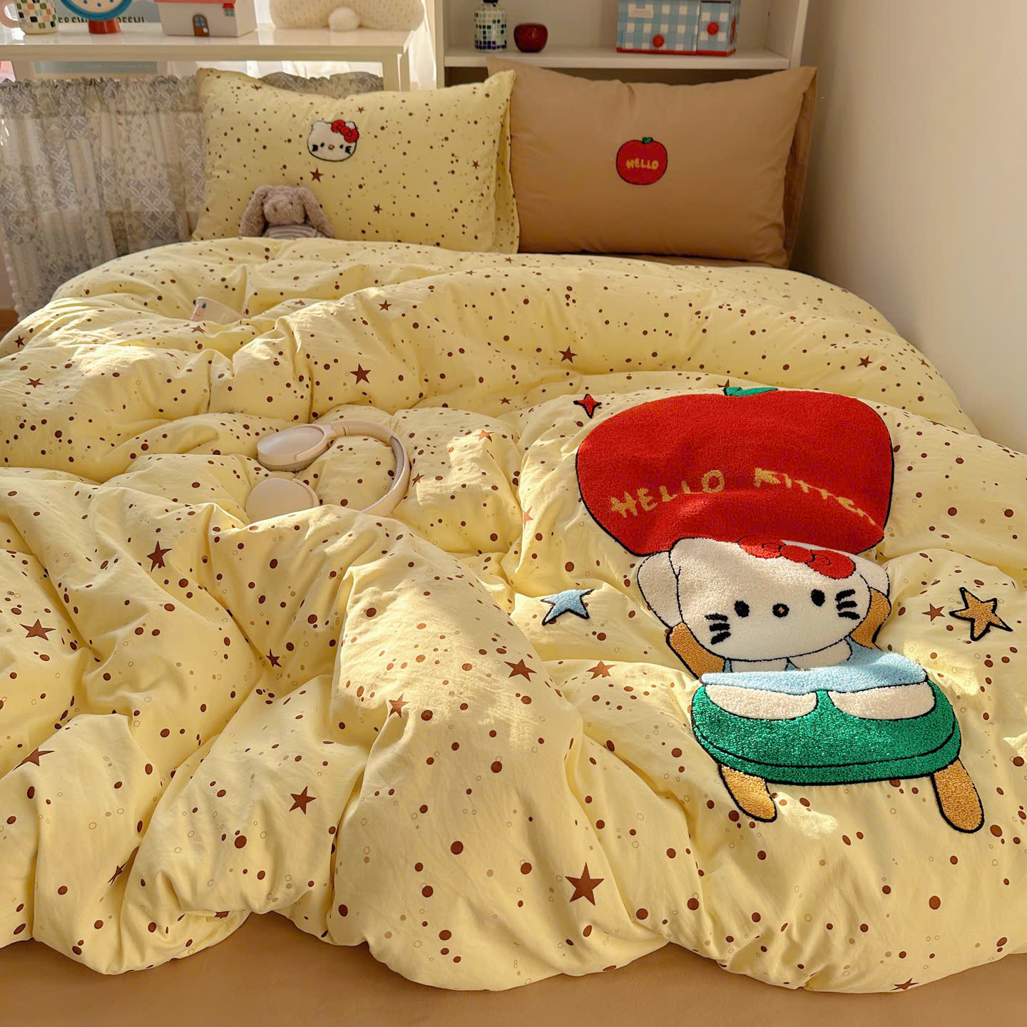 Với thiết kế họa tiết đáng yêu, bộ chăn ga gối này sẽ khiến căn phòng của bạn trở nên sinh động hơn. Điểm nhấn với đường thêu tinh tế tạo nên sự hài hòa, vừa ngọt ngào vừa hiện đại.