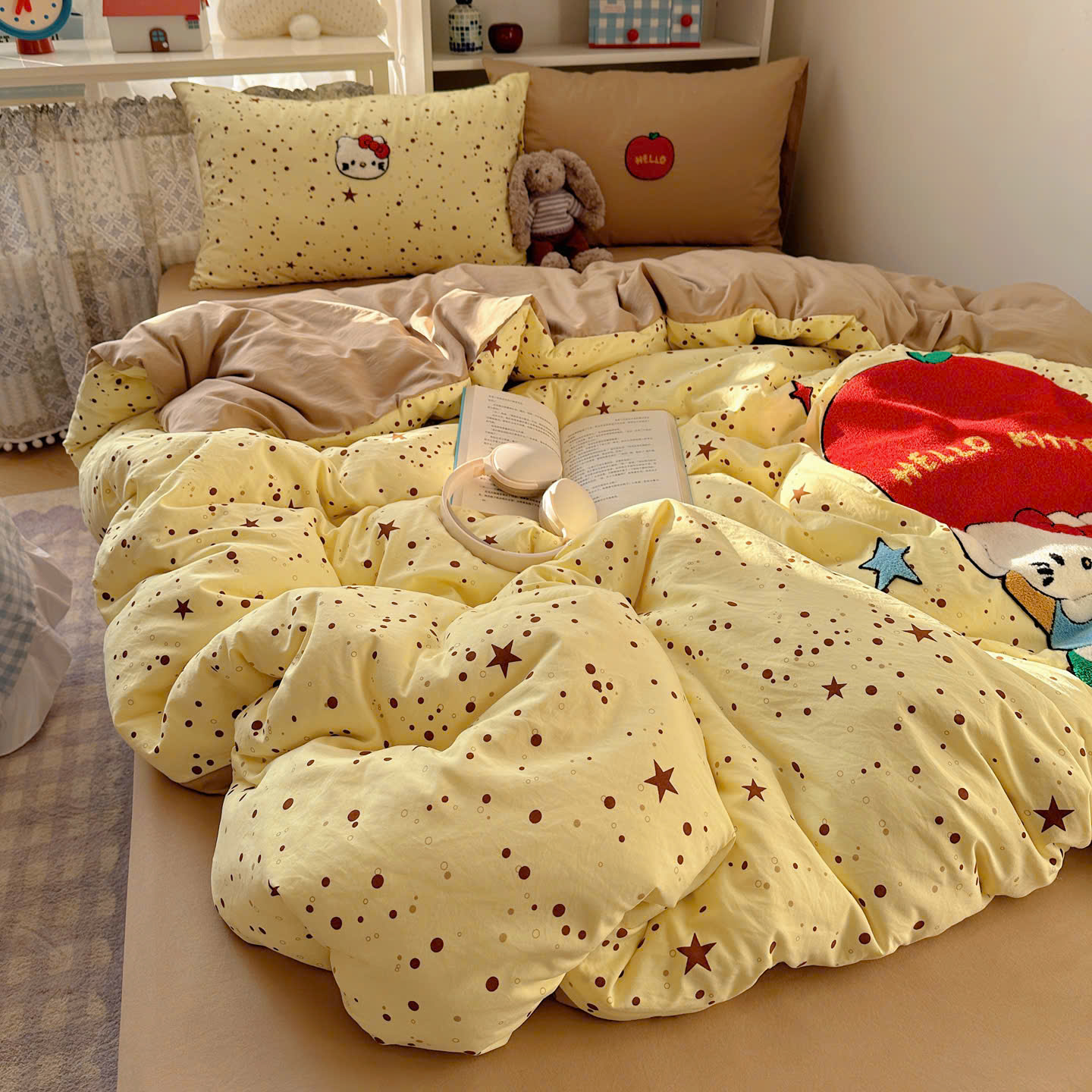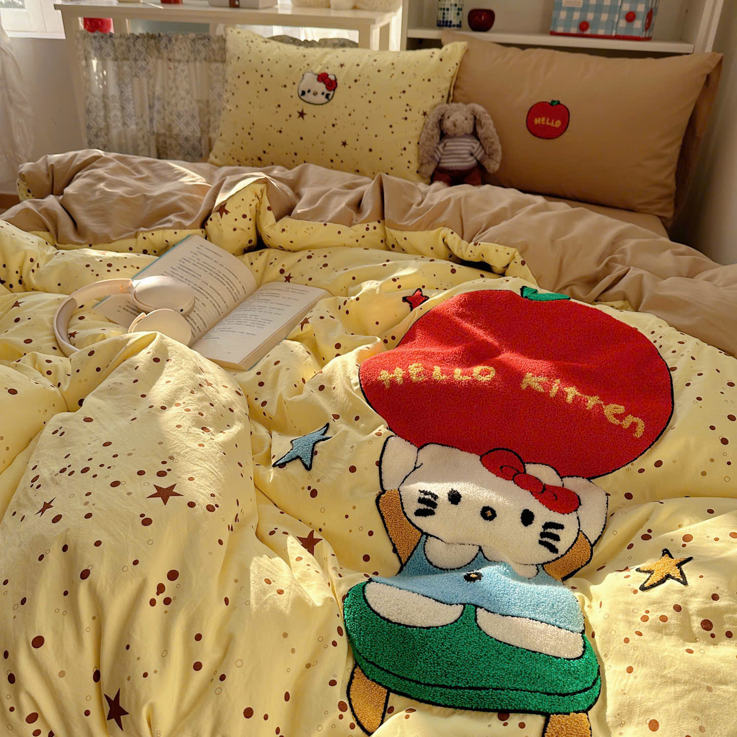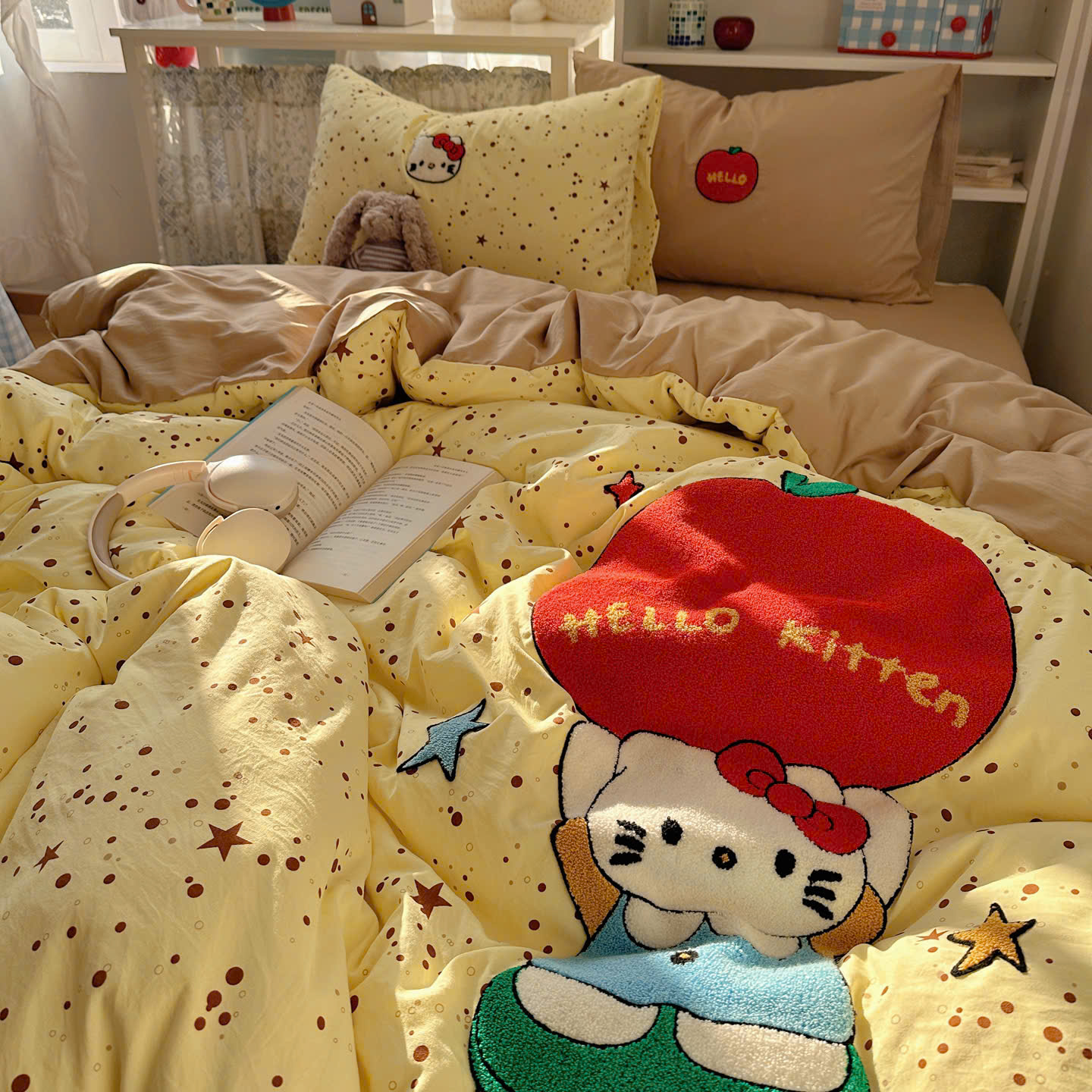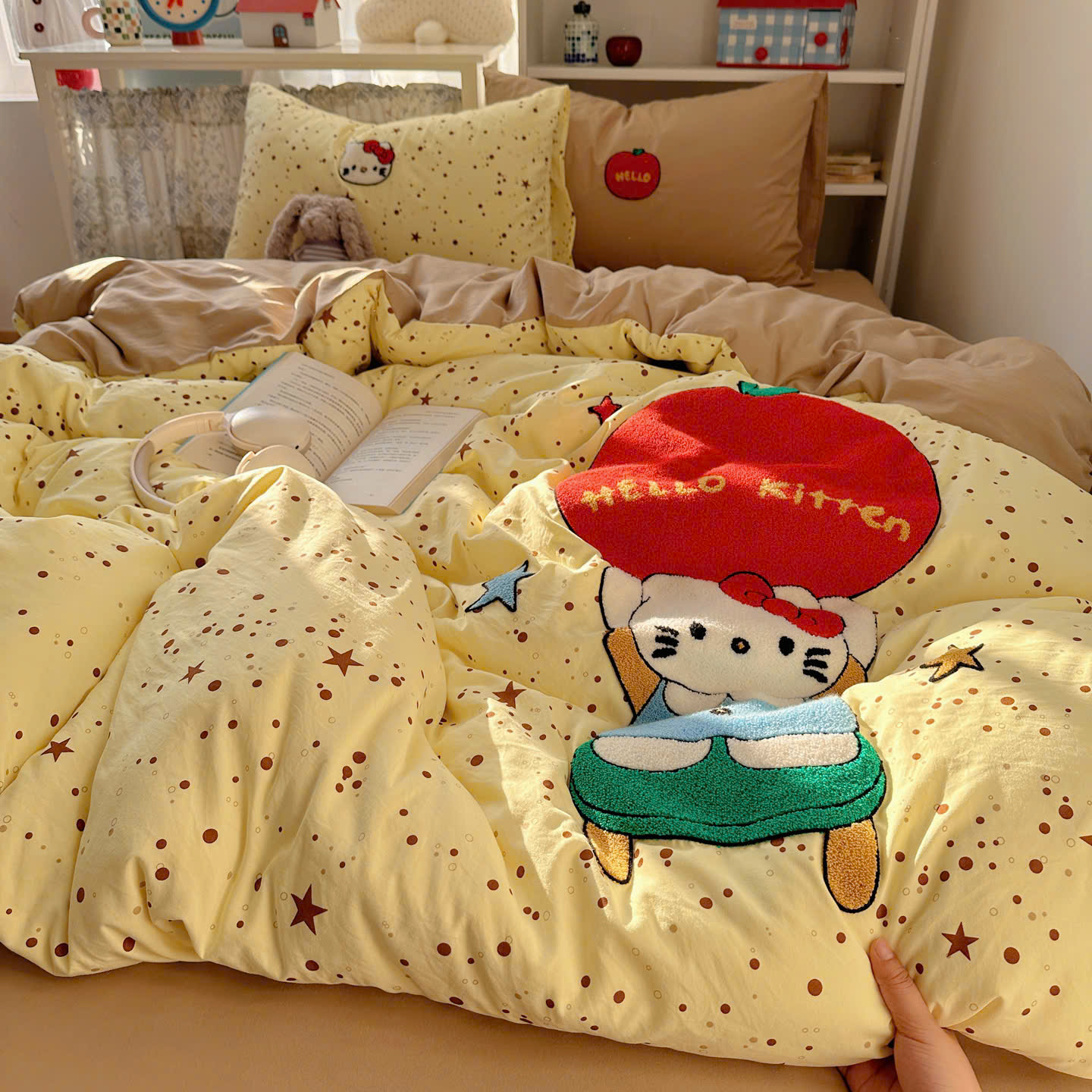 Với thiết kế họa tiết đáng yêu, bộ chăn ga gối này sẽ khiến căn phòng của bạn trở nên sinh động hơn. Điểm nhấn với đường thêu tinh tế tạo nên sự hài hòa, vừa ngọt ngào vừa hiện đại.
