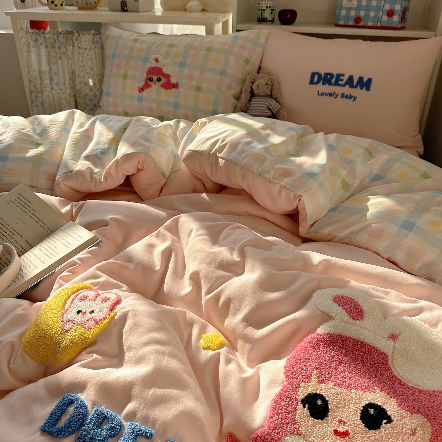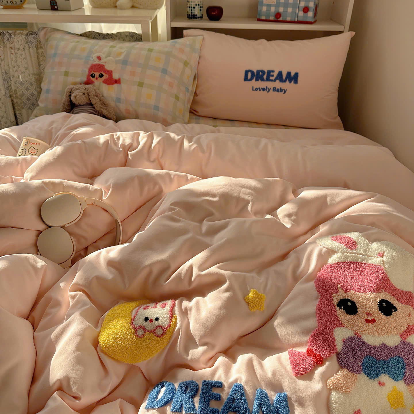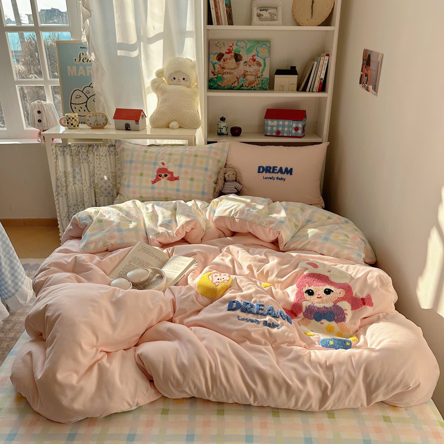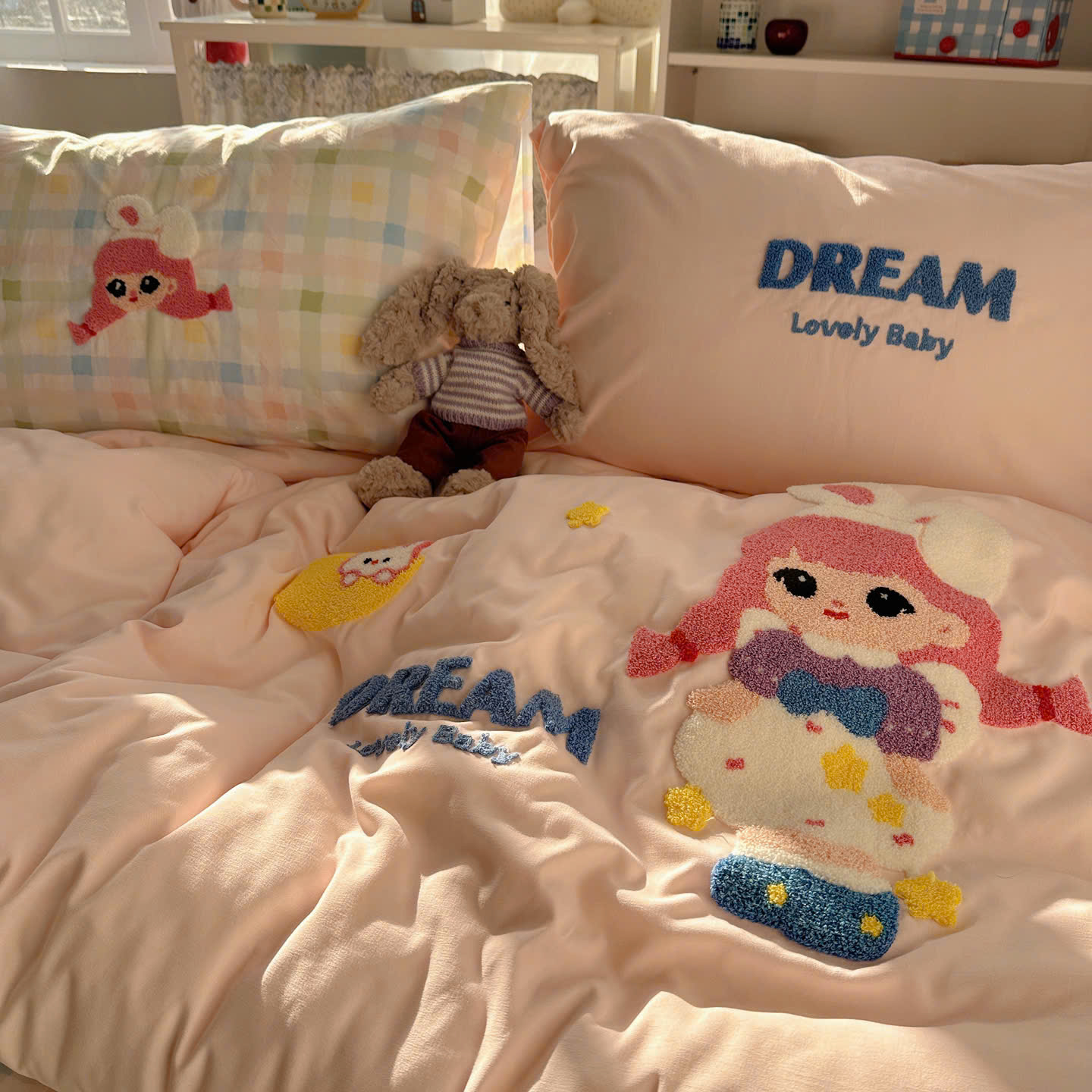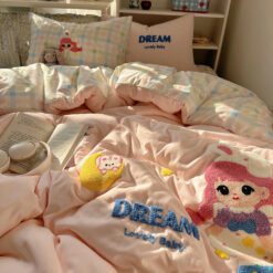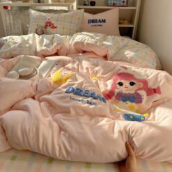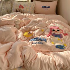 Với thiết kế họa tiết đáng yêu, bộ chăn ga gối này sẽ khiến căn phòng của bạn trở nên sinh động hơn. Điểm nhấn với đường thêu tinh tế tạo nên sự hài hòa, vừa ngọt ngào vừa hiện đại.