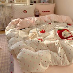 Với thiết kế họa tiết đáng yêu, bộ chăn ga gối này sẽ khiến căn phòng của bạn trở nên sinh động hơn. Điểm nhấn với đường thêu tinh tế tạo nên sự hài hòa, vừa ngọt ngào vừa hiện đại.