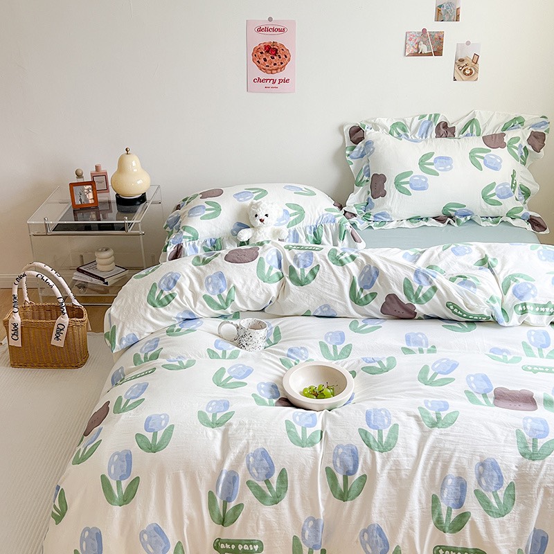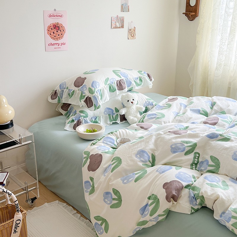 🌺 Thiết kế lấy cảm hứng từ loạt chăn đũi xơ đậu nành hot hit, nay đã có phiên bản set chăn ga 4 mon dùng được cho cả 4 mùa.